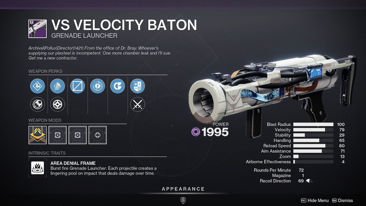 | VS Velocity Baton | Grenade launcher (breech-loading) | Void | Area Denial |