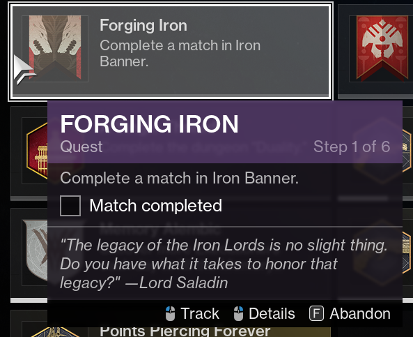 Step five of six – Complete Iron Banner matches while wearing at least one piece of Iron Banner armor
