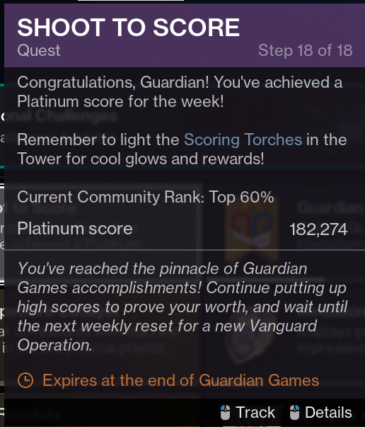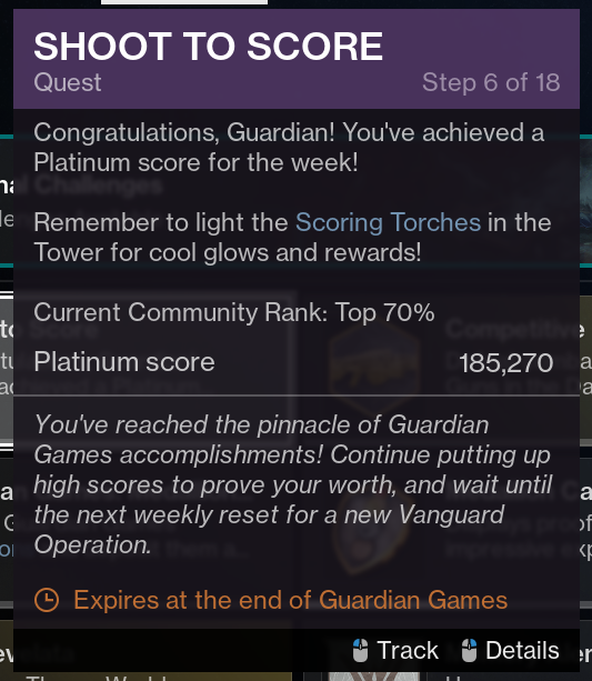 The next four steps can be knocked out in one go if you’re able to attain Platinum score in the Guardian Games: Competitive playlist. Competitive is only live during the weekends, so it must be completed after the reset on Friday and before the weekly reset on Tuesday.