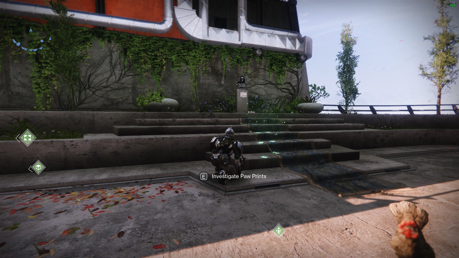 That gunslinger? The late Hunter Vanguard Cayde-6, of course. From the ramen shop, head left and towards the courtyard (or fast travel), then move to the Ironwood Tree and the memorial behind it. You guessed it: Another set of paw prints.