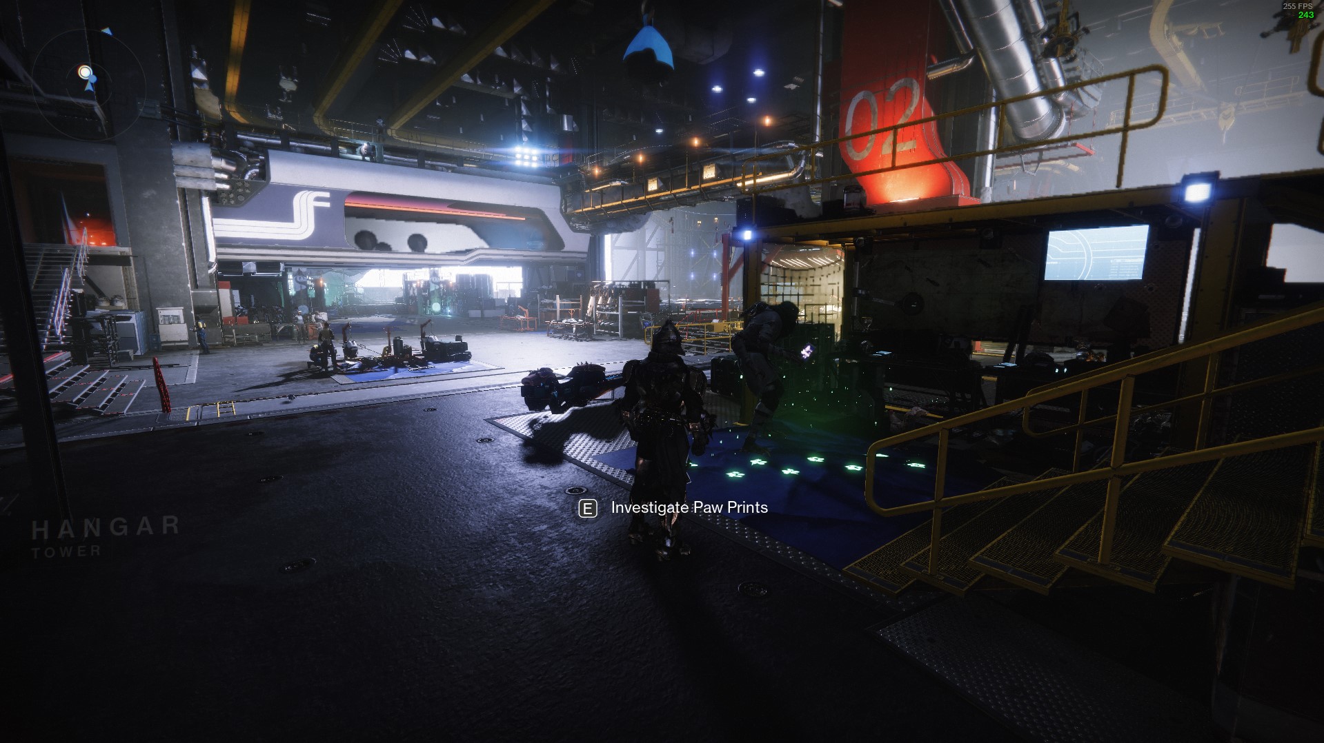 “Archie took off past the security checkpoint to salute a feathered friend.” Man, this dog moves fast. From here, head down to the hangar where Saint-14 resides. Just as you enter the hangar, turn slightly right, toward where Cayde and Amanda used to stand next to the ships. Cayde’s chicken, the Colonel, will be flapping around on the spot next to another set of paw prints.