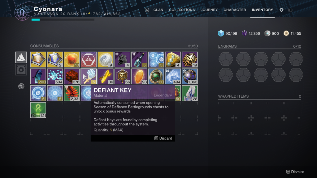 Unlike prior seasons where the grindable currency could number in the thousands and require spending hundreds to make use of, Defiant Keys are a much simpler concept to grasp. One Defiant Key will provide one chest worth of high-tier loot at the end of a Defiant Battlegrounds playlist run. The key is automatically consumed when opening the final chest as well, meaning you will get the better rewards without needing to use the key on a separate chest at the end of the activity.