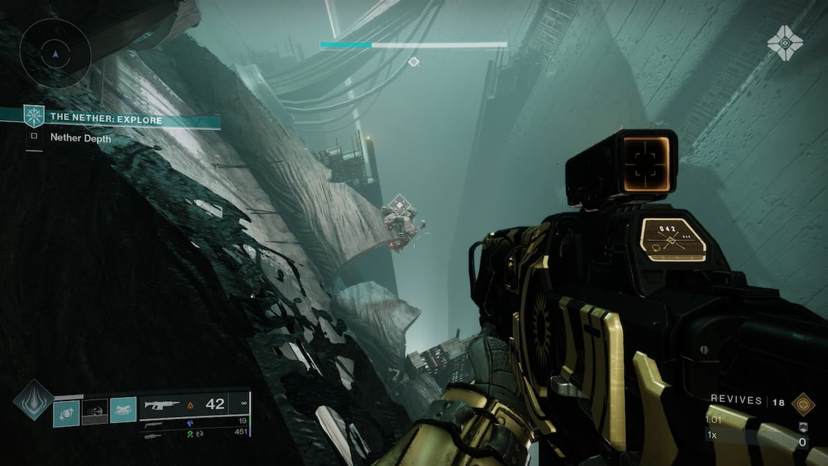 Two of the necessary spots are close to each other, and there’s a third just below the entrance to a different area. All our attempts to load into this activity led us to the Hall of Souls, so you could reasonably just grab the resources you need from here, go to orbit, load back into the Nether: Explore, and repeat the process.