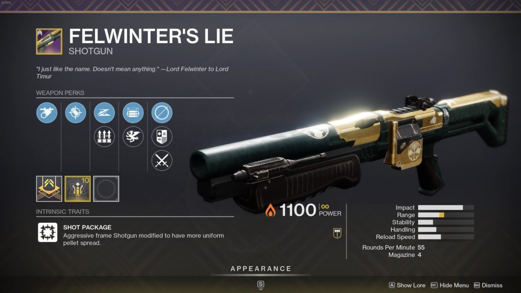 If you don’t have Felwinter’s Lie, Astral Horizon is another solid PvP shotgun thanks to its high impact and decent range. If you roll range-specific perks, this thing is a beast. It drops as a reward in Trials of Osiris matches.