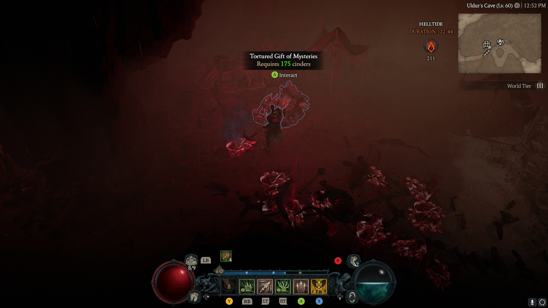 Helltides are special, timed events that start periodically after World Tier Three and come with their own rewards. Each Helltide sees the invasion of hordes of demons in one of the five main areas (Fractured Peaks, Dry Steppes, Scosglen, Hawezar, and Khejistan), and lasts for an hour, with the game displaying how much time you have on the top-right side of your screen. During that time, killed enemies will drop Aberrant Cinders, which you can use to open specific chests during the Helltide. You can spot a Helltide by the blood-red glow on the map and the Helltide icon over a zone.