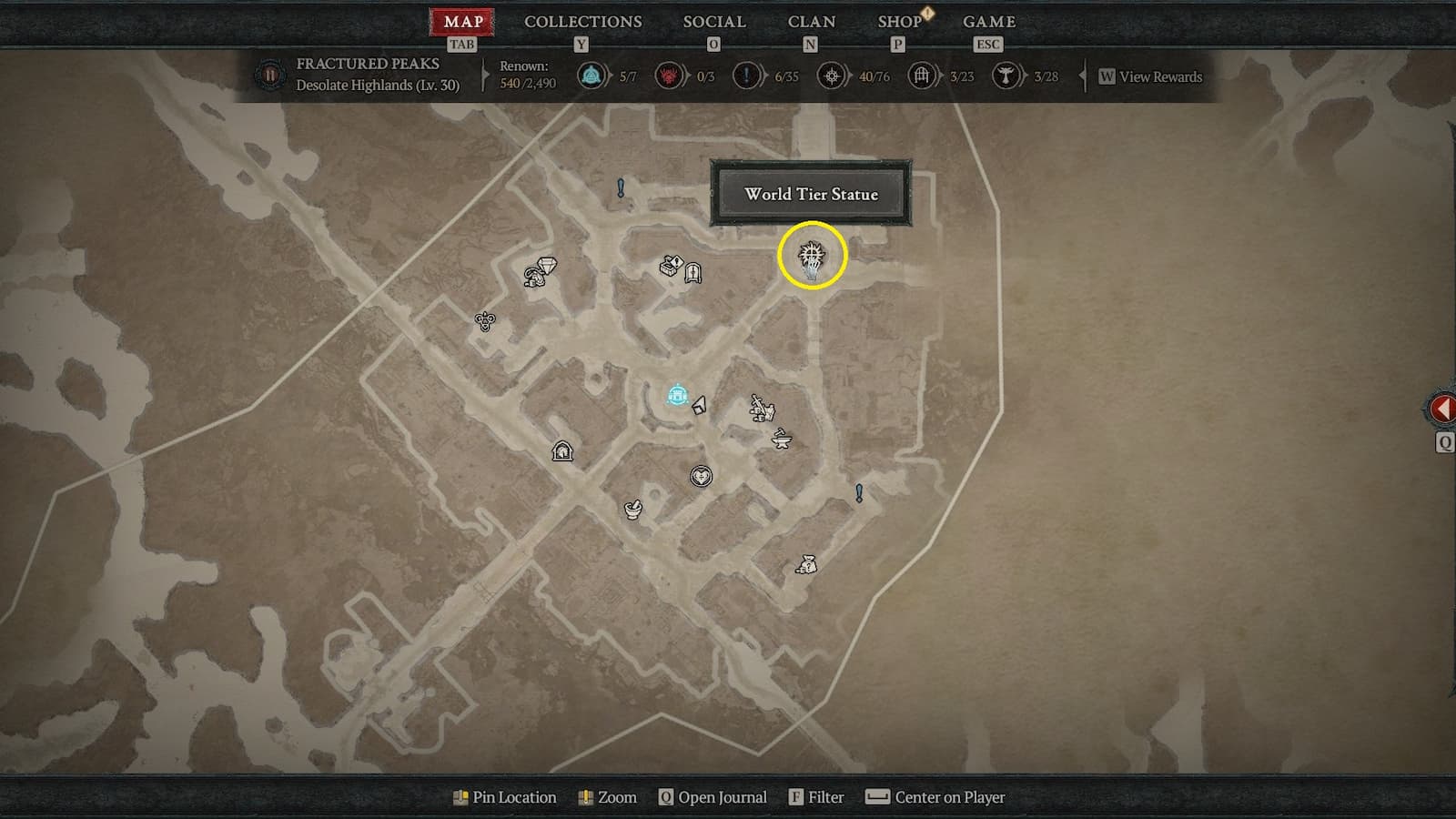 Yes, you can change World Tiers without exiting to the character selection screen in Diablo 4. For this, you will need to visit the World Tier Statue located in the northern region of Kyovashad. Check the image above to see how a World Tier Statue looks on the map.