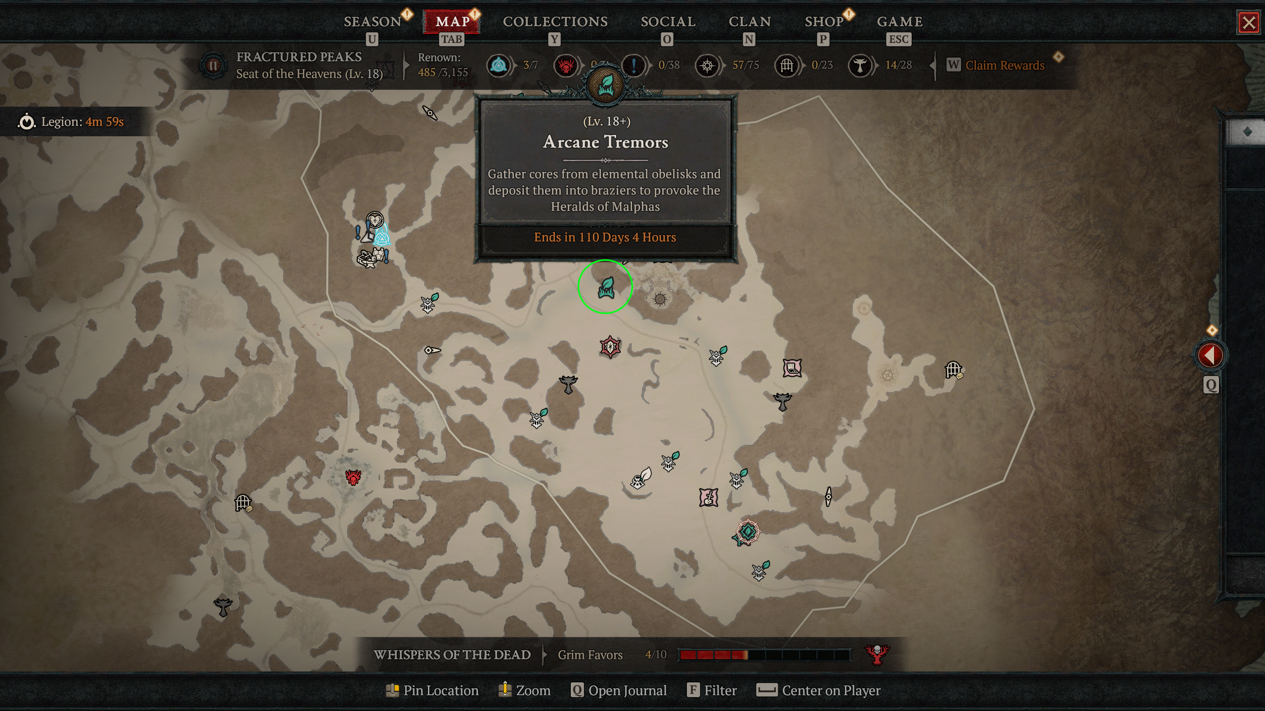 To summon the Heralds of Malphas inside the Arcane Tremors in Diablo 4’s Season of the Construct, you must find a Brazier and have the necessary summoning materials: three Elemental Cores and 50 Shattered Stones.