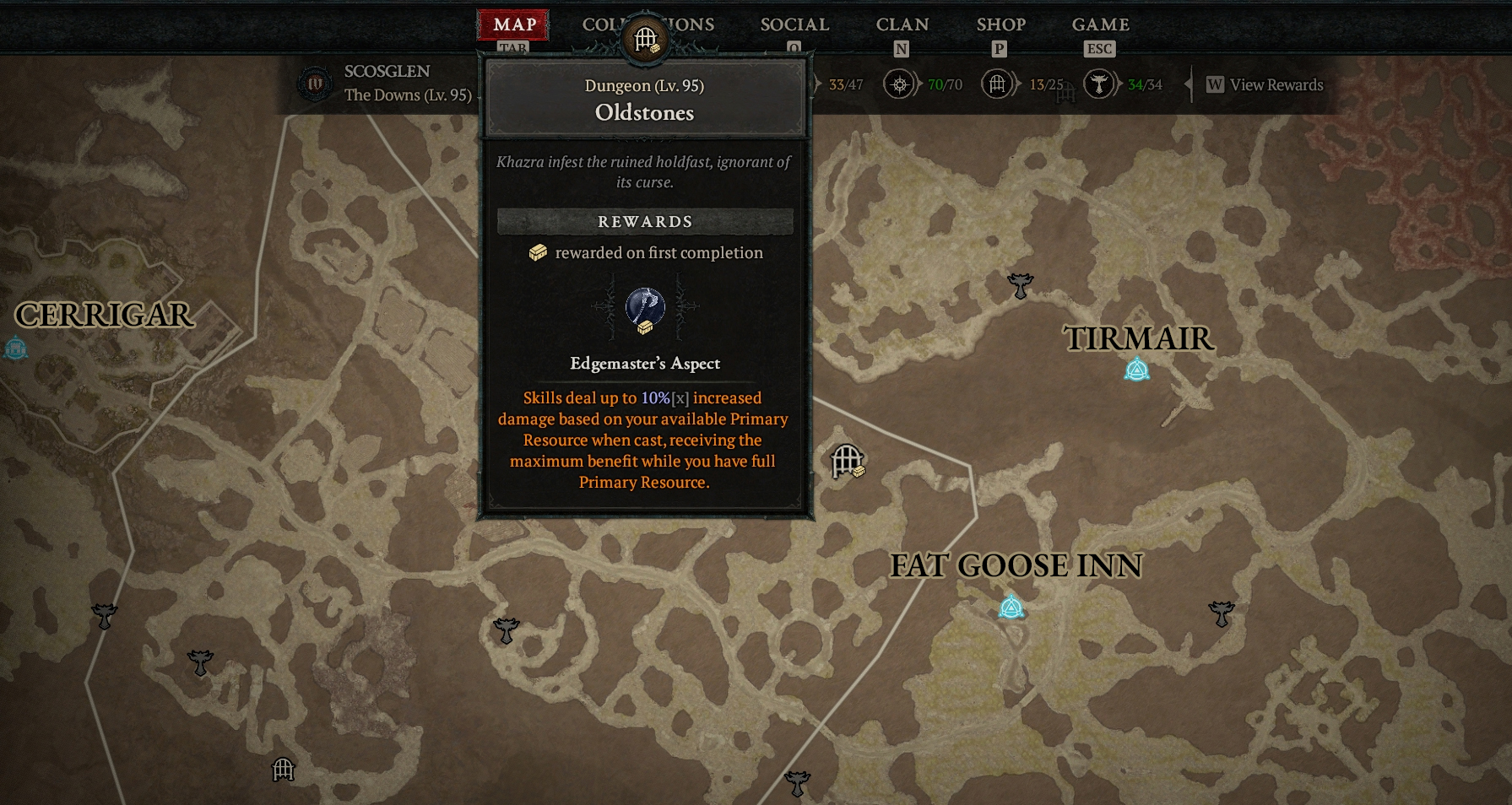 If you’re just looking to unlock the base version (with the lowest stat), all you need to do is clear the Oldstones dungeon in the Downs in Scosglen, west of Cerrigar. The closest waypoint is the one Under the Fat Goose Inn, but Tirmair will do the trick if you don’t have that waypoint unlocked.