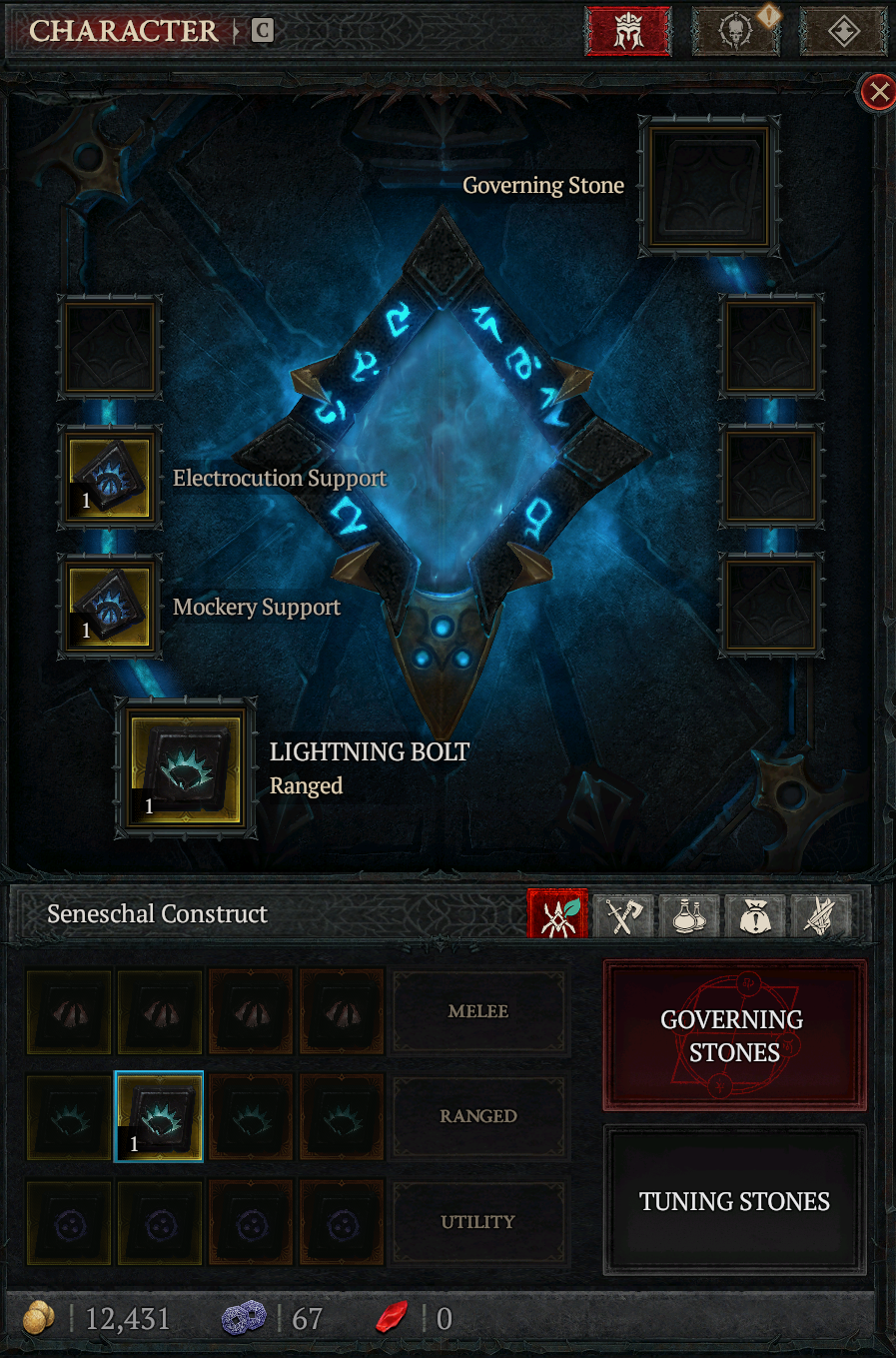 To collect both Governing Stones and Tuning Stones, you will need to complete Vaults, which will reward you stones at the end and also drop stones from elite enemy constructs. You can get more stones out of Vaults by opening Wardwoven Chests at the end, provided you complete a Vault with at least one stack of Zoltun’s Warding still active. You earn this blessing at the start of a Vault with Pearls of Warding, and lose stacks every time you take damage from a trap.