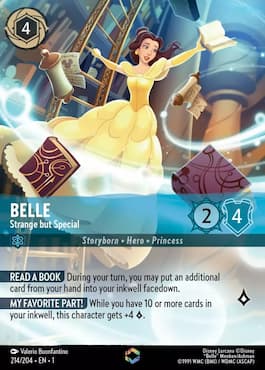Cards that have the Enchanted rarity are existing cards within Disney Lorcana that have been given special foiling treatment and new artwork. Each set will contain Enchanted cards, found in the foiling slot of a Lorcana booster pack.
