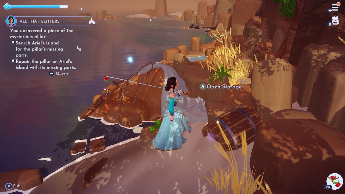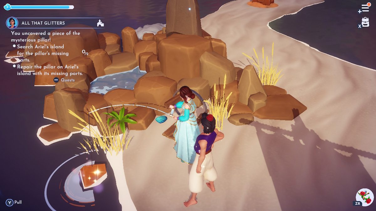 Return to Ariel’s island and you’ll find an unexpected visitor—Jasmine! She heard about your search and wants to offer her help. She suggests that the symbols on the pillar are part of a puzzle that needs to be solved.