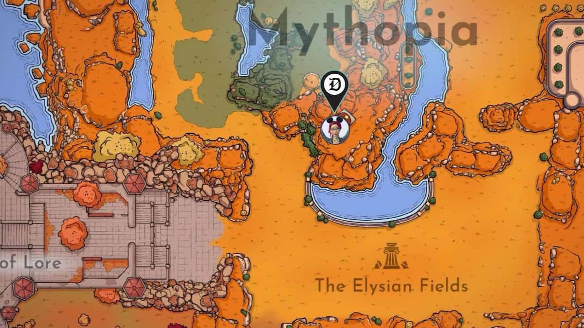 The Tale highlights the location of the Sacred Spring, so head to The Elysian Fields biome in Mythopia to find it. You can find the entrance to this hidden area on your right just before the ramp that leads from The Elysian Fields to The Fiery Plains.