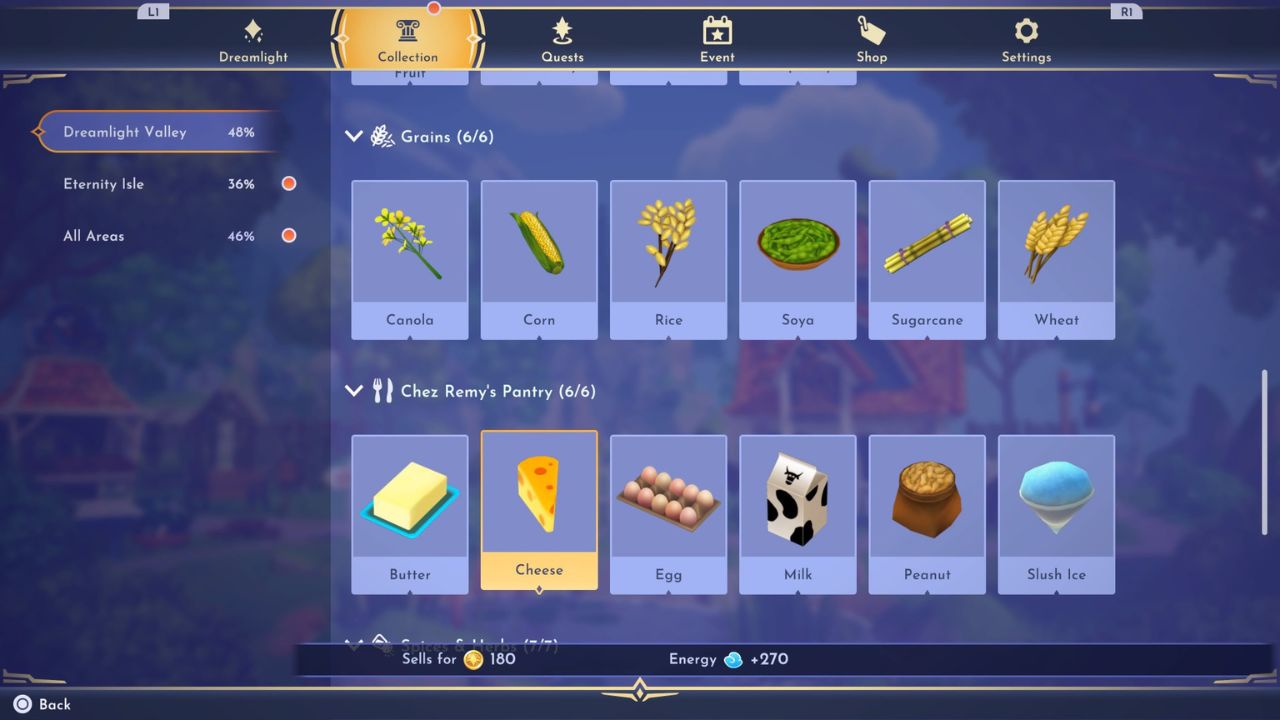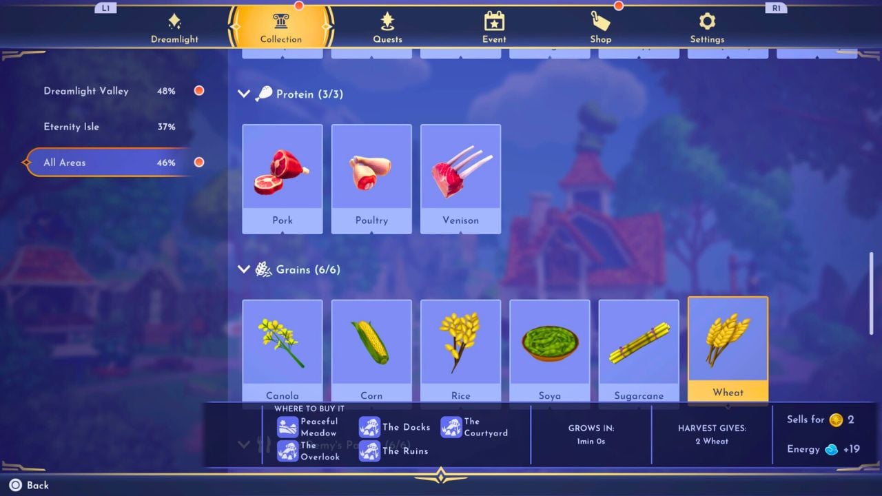 | Wheat | You can purchase Wheat from Goofy’s Stall in the Peaceful Meadow in the Dreamlight Valley realm. |