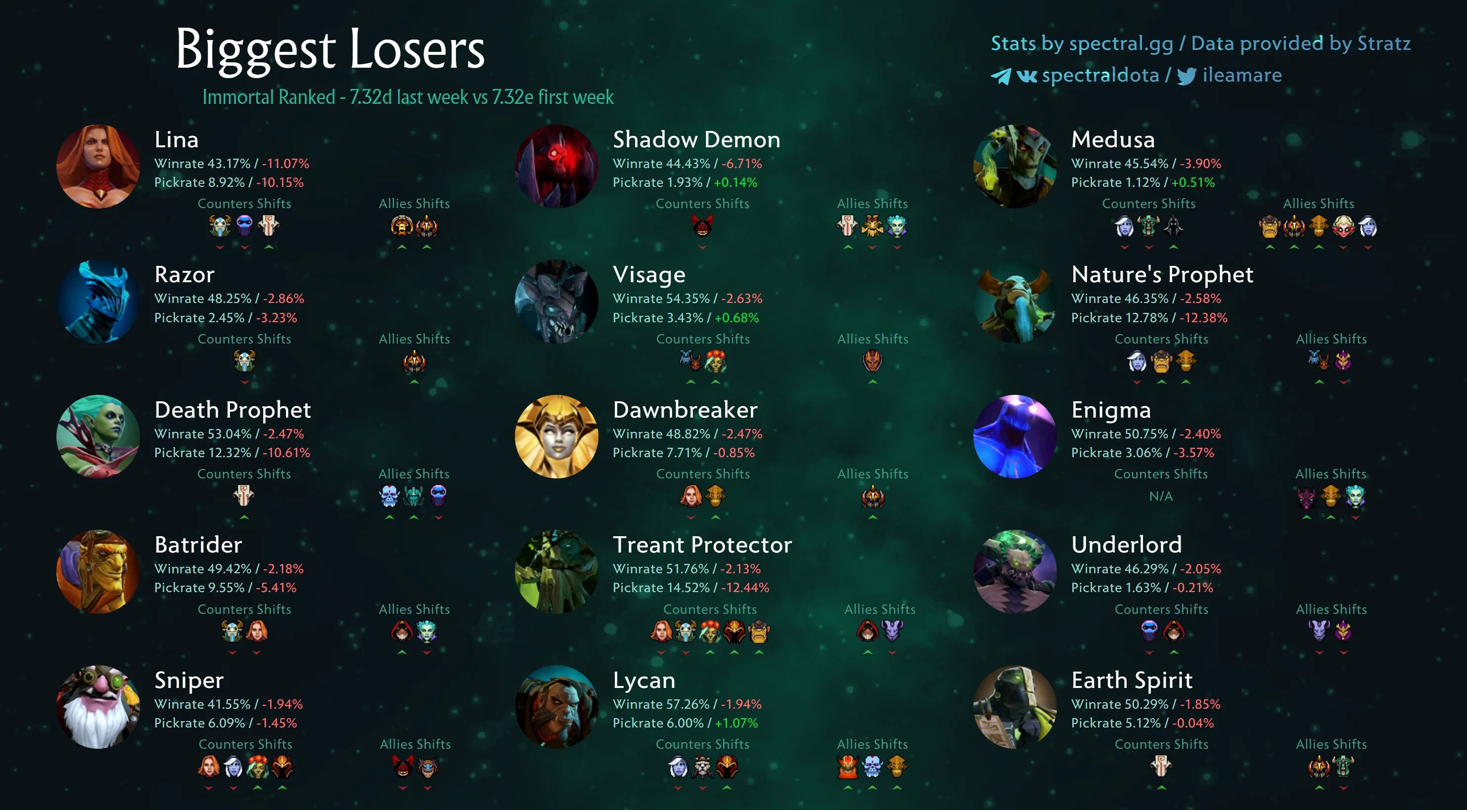Since winners exist, so do losers, and none has lost more than Lina. Going from a first-phase pick/ban down to a subpar 43 percent win rate shows how badly the nerfs have hit her. Joining her is Razor whose shard nerfs have almost destroyed his Bloodstone build, leaving him in a state of limbo.