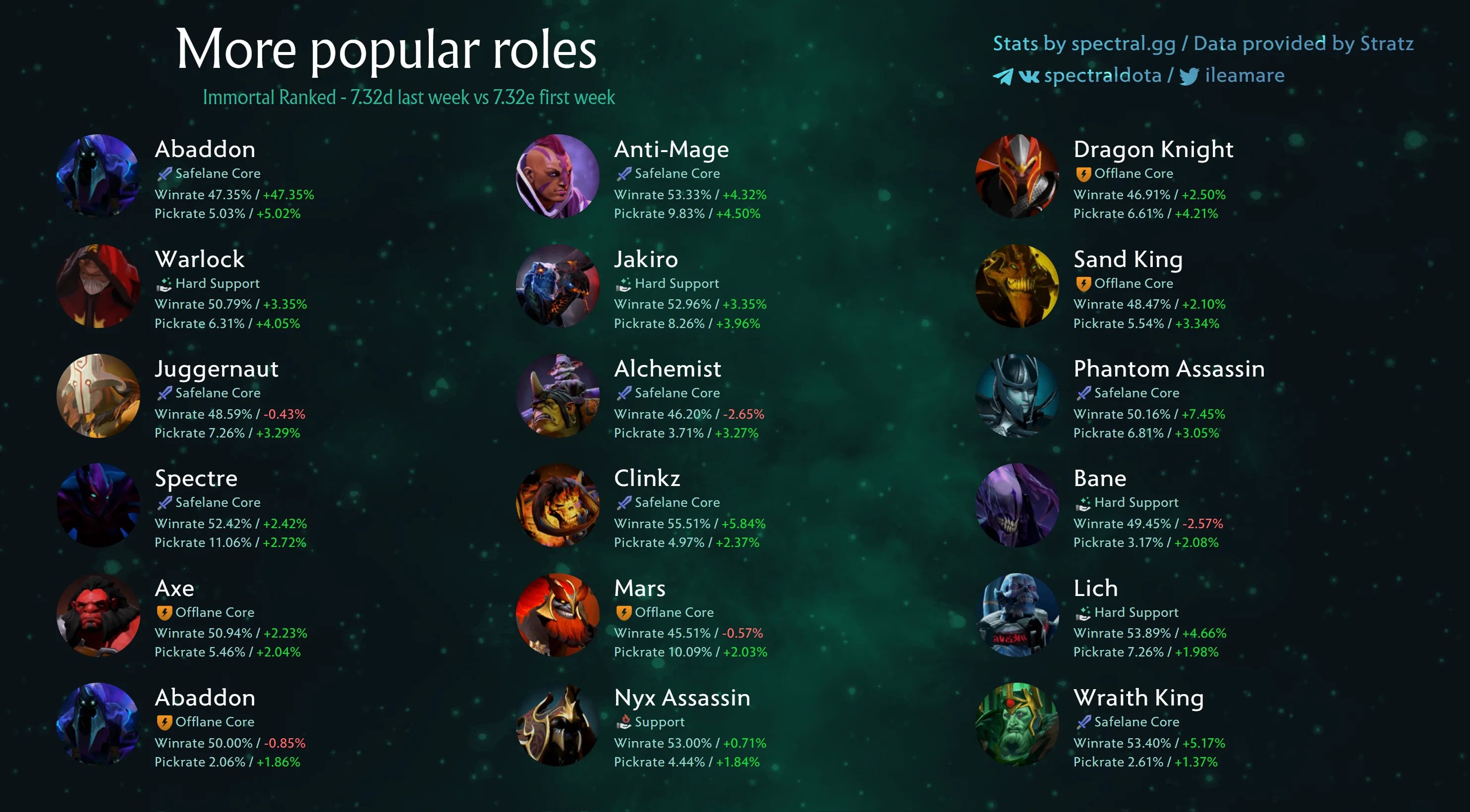 The most major shift we have seen so far is Abaddon playing as a safe lane core hero with Radiance and Manta Style. The improvement to his base attack time with the cheaper cost of Radiance propelled this hero into the meta. Manta Style also procs his Curse of Avernus, making it an almost instant silence once he gets on top of someone.