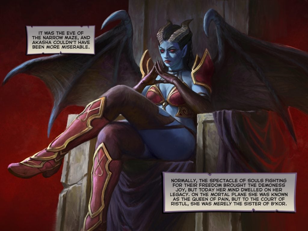 Akasha, the Queen of Pain, is a well-traveled and well-met demon. On the journeys to obtain her hellish new Arcana, she met Vanessa, who’s only human but still immensely dangerous.
