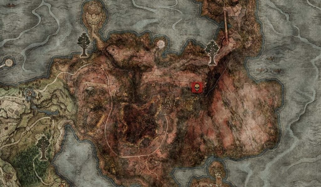 You can find the sleeping dragon’s location in Caelid, to the southwest of minor Erdtree, to the northeast of Caelid in Elden Ring. You can find Caelid to the east of Limgrave, but I would not advise going straight to this area after starting the game; it’s better to visit after you’ve earned a few levels and grabbed multiple items you can use to aid you during your adventures.