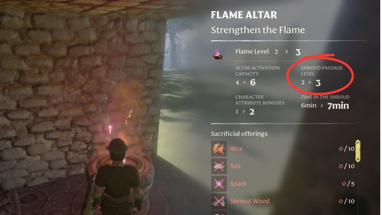 To beat the Deadly Shroud in Enshrouded, level up your Flame Altar’s Flame Level. This boosts your Shroud Passage Level, the key to crossing Deadly Shrouds. Once the Flame Level is upgraded, Deadly Shrouds turn into regular Shrouds, letting you safely stay as long as your Shroud Time holds.