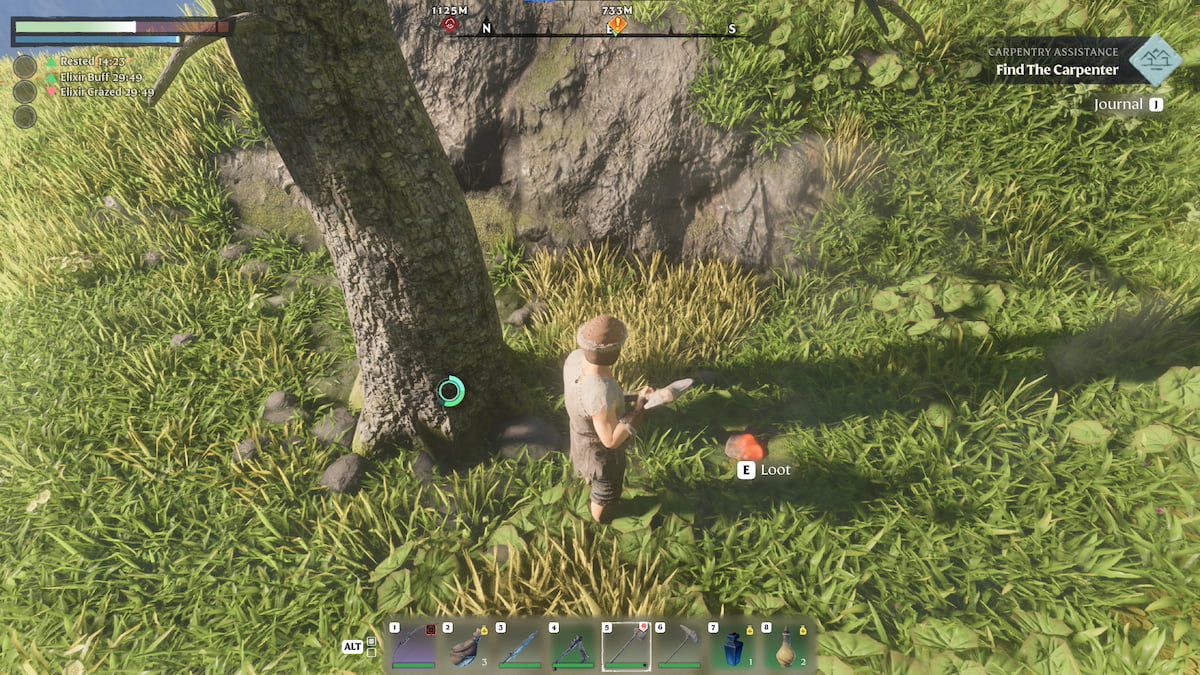 You will need an axe to smash through these trees, and resin has a chance to drop after you’ve finished cutting one down. I acquire resin relatively quickly if I’m harvesting from a nearby forest next to my house. I placed one down close to the starting area, right before Braelyn Bridge, and many of the trees in this area drop resin. The resin drops before the tree fully falls to the ground, and it appears as a small, orange drop in the grass. You won’t have as much trouble tracking this down as you might salt.