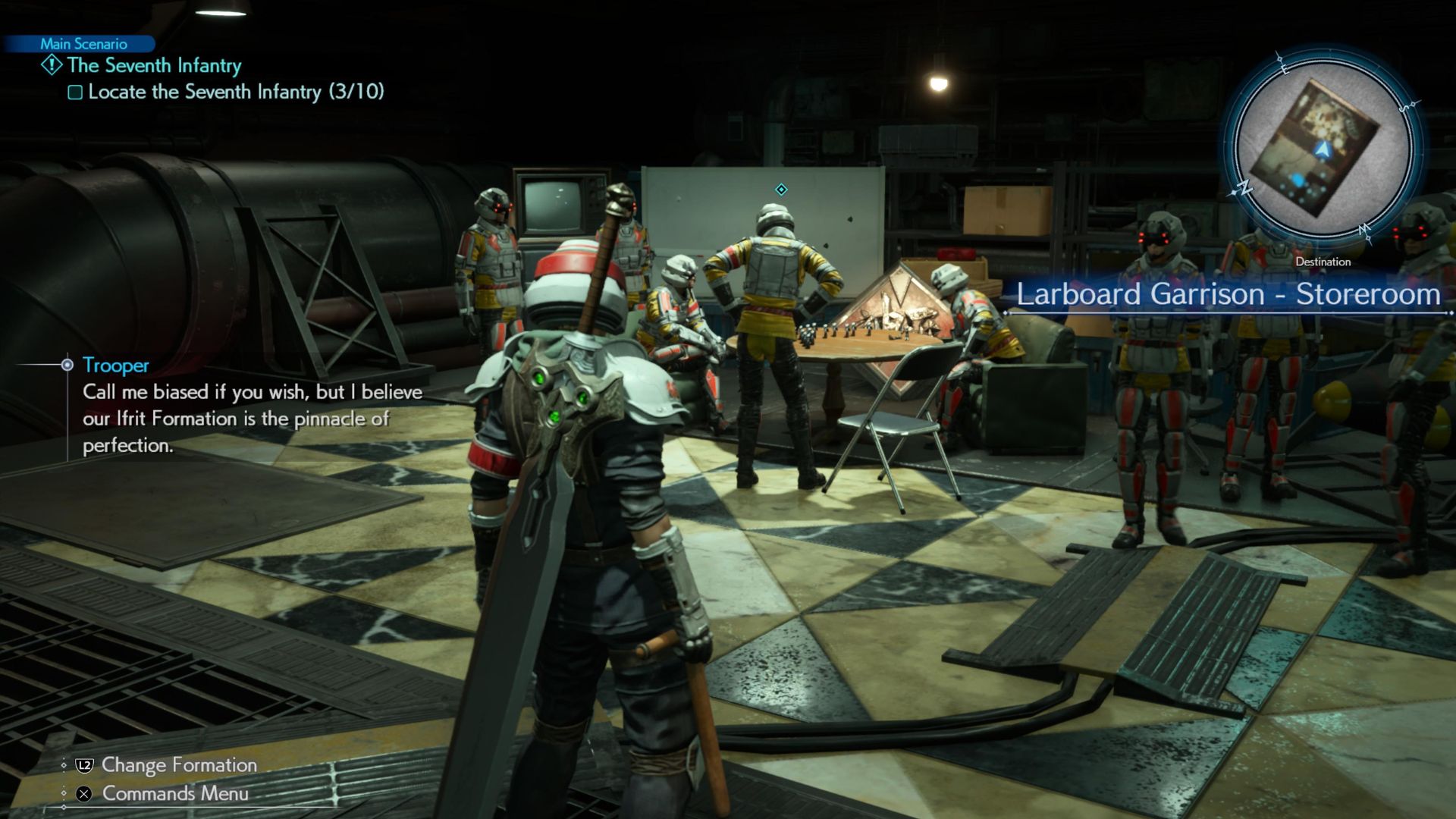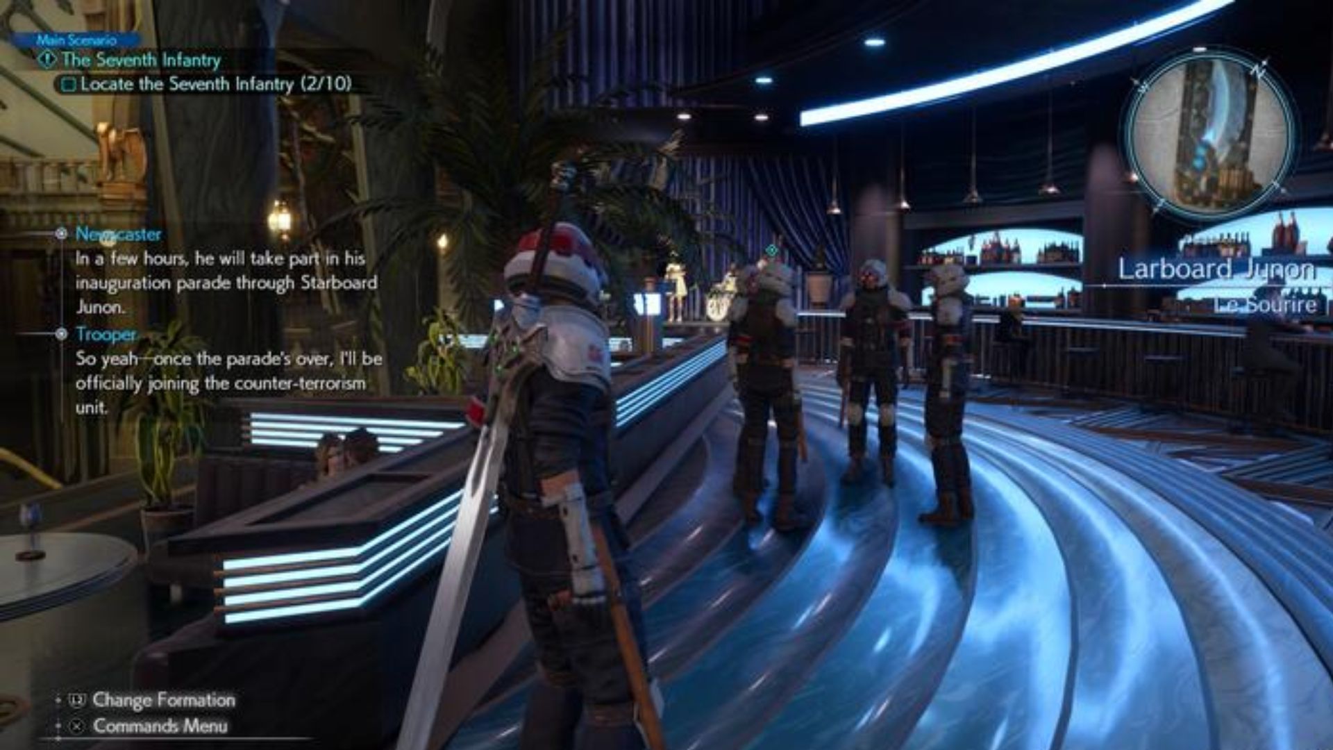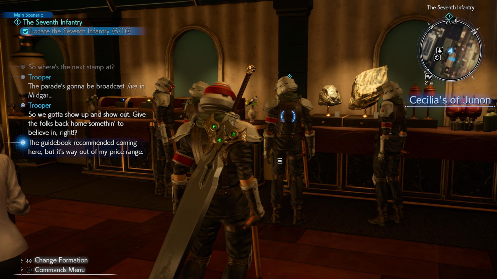 Conveniently, the 10 squads are dispersed across upper Junon and spread out across shops, bars, and Barracks, and some are even just out in the open. Chances are, like I did for a while, you will miss one, waste time, and get frustrated.