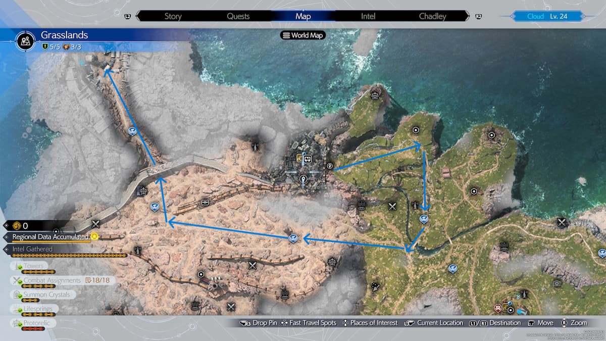 To complete the quest, go to the northernmost side of the Grasslands (northwest of Kalm) and pick three types of flowers.