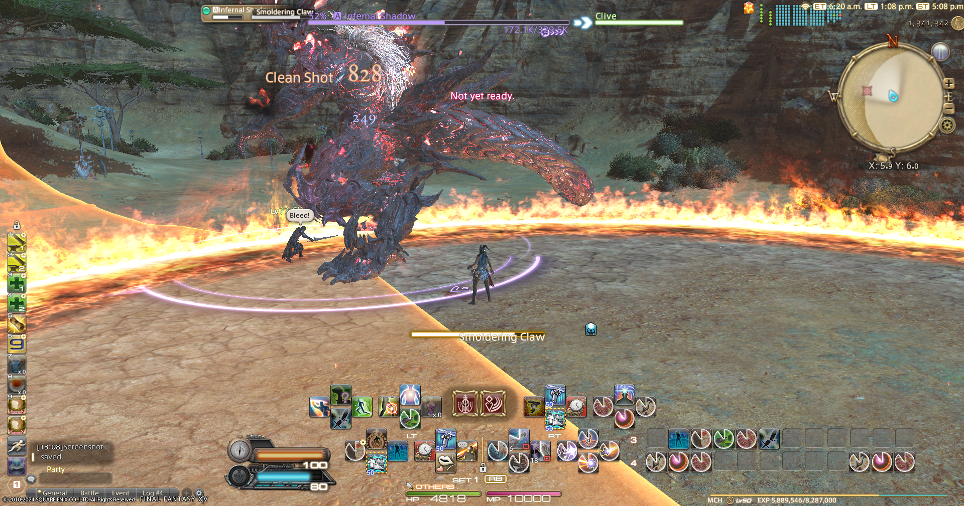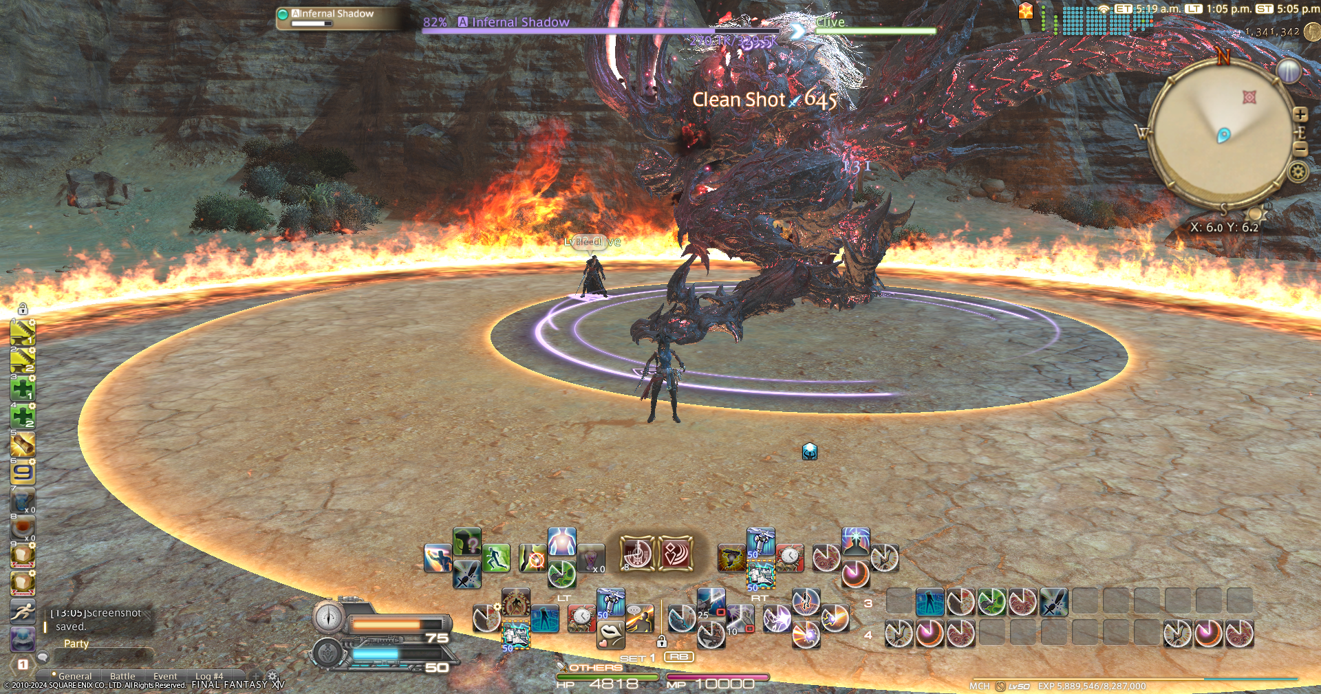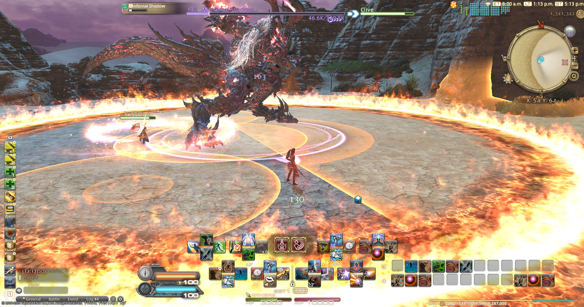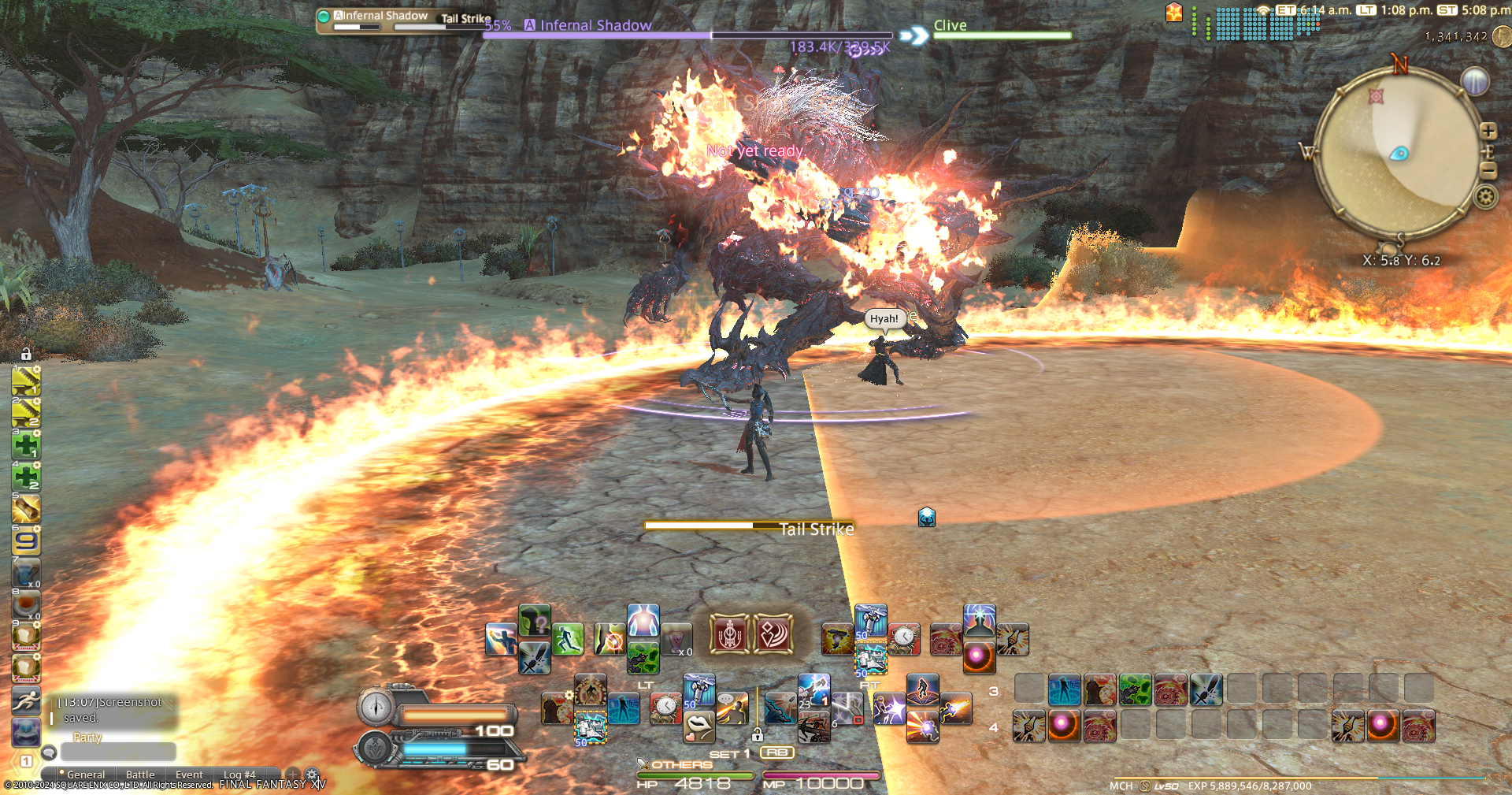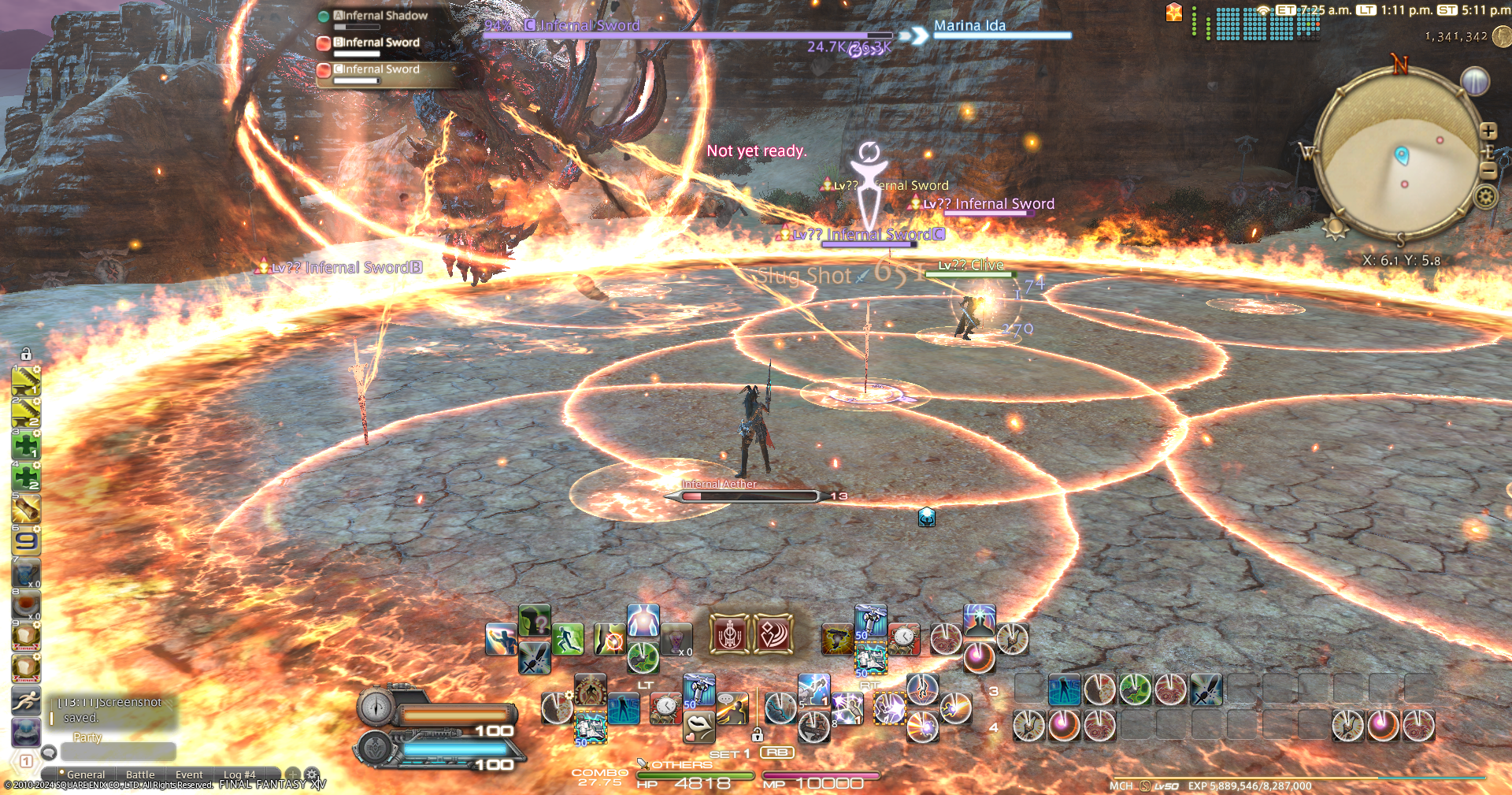 After taking a certain amount of damage, the boss becomes untargetable and summons four Infernal Swords across the arena. They function identically to the Infernal Nails mechanic in FFXIV’s normal Ifrit encounters: Your goal is to whittle all four swords down before the boss’s counter reaches 100, all while dodging the AoEs that pop up all over the arena.