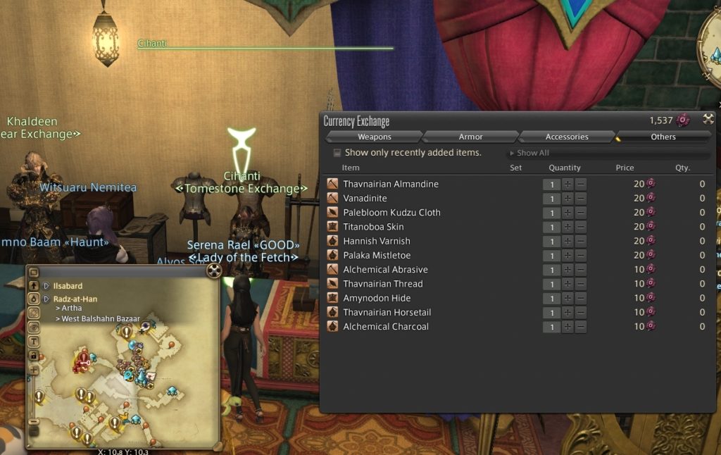 Those looking for the material can find it in Radz-at-Han at X:10.8 Y:10.3. The vendor that sells it is the Tomestone Exchange vendor named Cihanti. The material is under Tomestones of Astronomy (Other). Once you’ve run out of tomes, you’ll either need to farm content for more tomes, which may take a while, or make use of the Market Board.