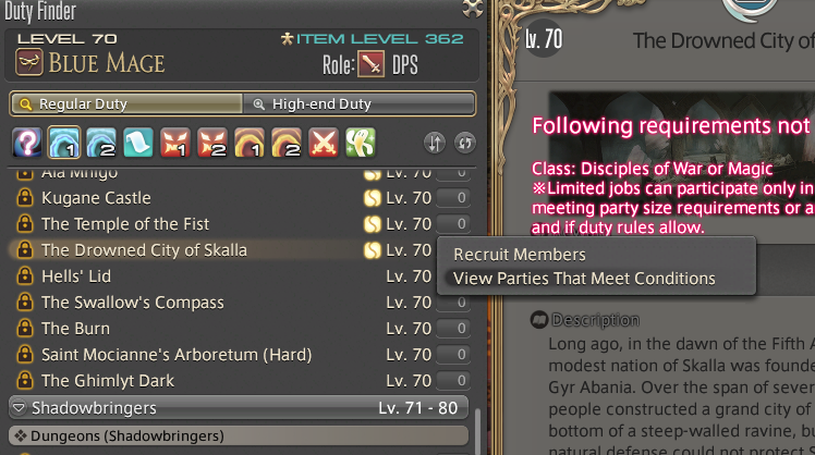 Teaming up with Blue Mages to complete Duties is a bit more challenging than on other combat jobs since you cannot enter regular matchmaking with Blue Mages. You’ll have to find teammates manually using the Duty Finder instead.