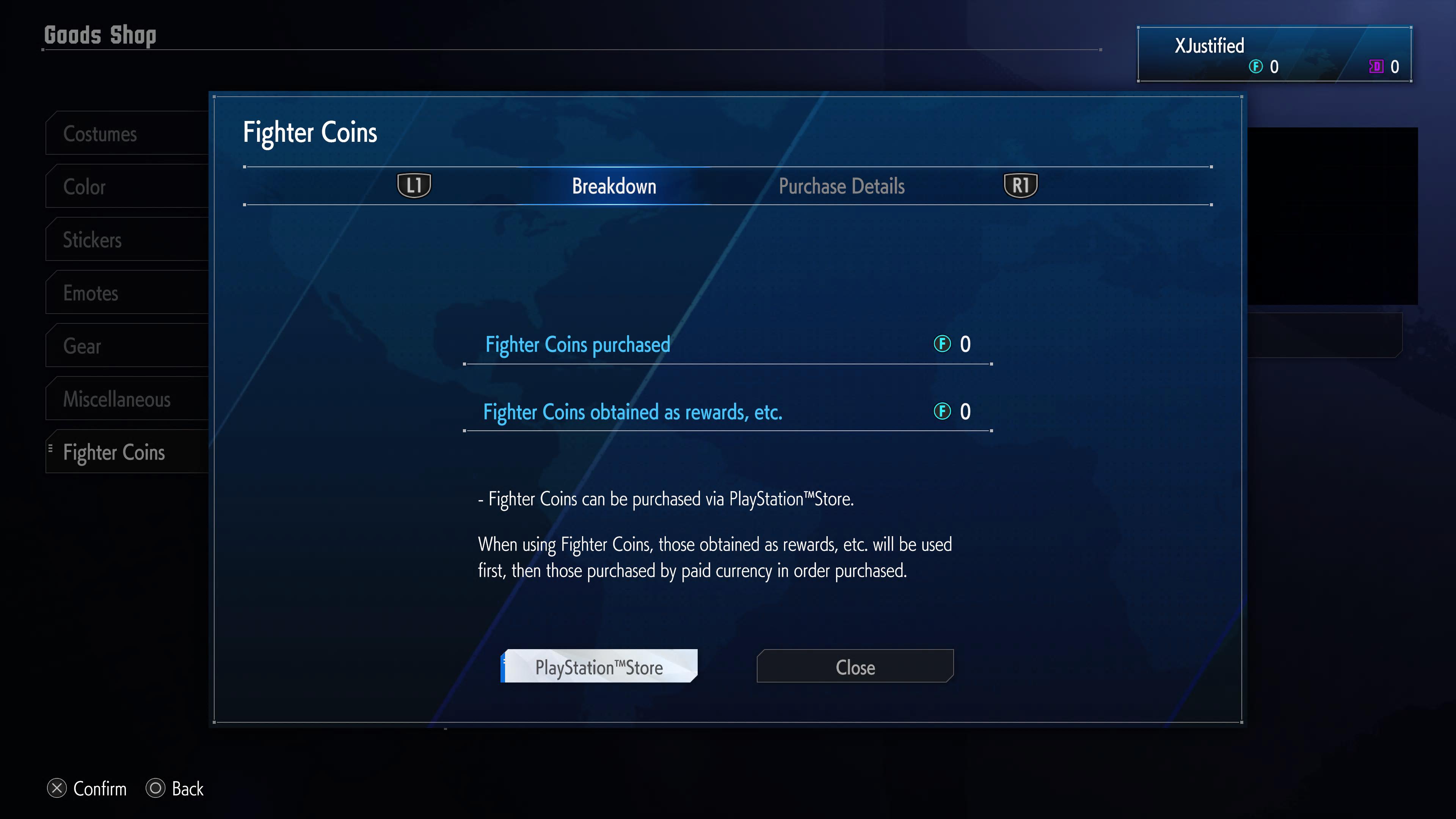 Opening that menu will prompt you to open your platform’s marketplace, so for me, it was the PlayStation Store. From there you will select the amount of Fighter Coins you want to purchase for the listed, real-world value.