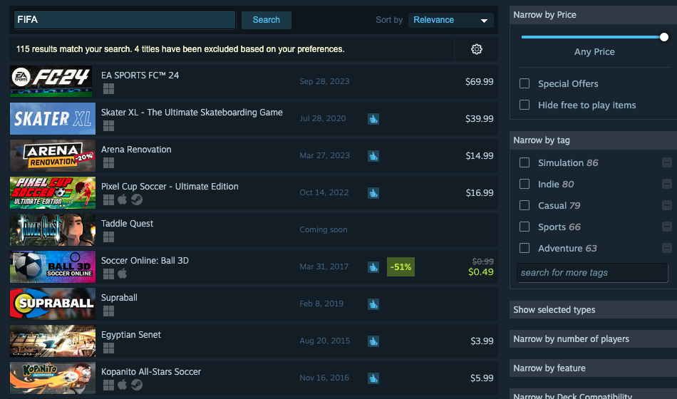 EA has not openly acknowledged these massive delistings which make it impossible to purchase even the most recent FIFA title, FIFA 23. The last FIFA game still has over 30,000 average daily players on Steam alone, according to Steam Charts.