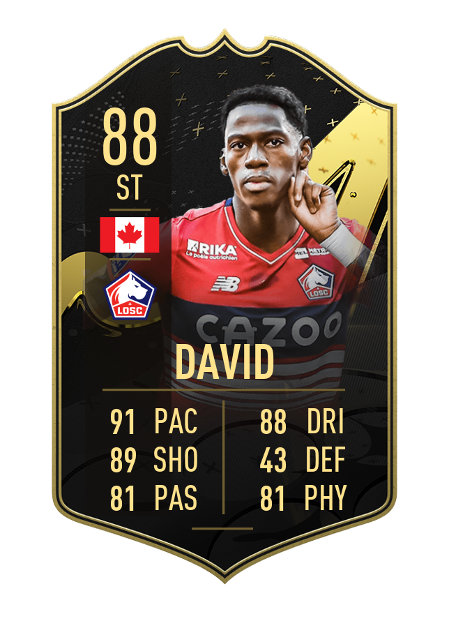 The players with the highest overall ratings this week are 88-rated Jonathan David from Lille, 88-rated Domenico Berardi from Sassuolo, 87-rated Loïs Openda from RC Lens, 87-rated Éder Militão from Real Madrid, and 87-rated Mateo Kovacic from Chelsea.