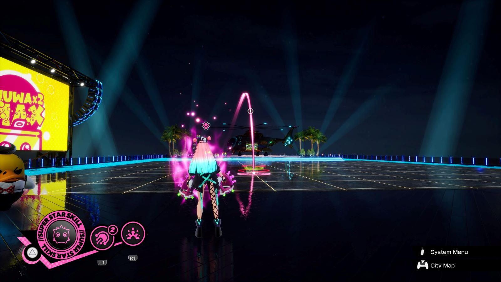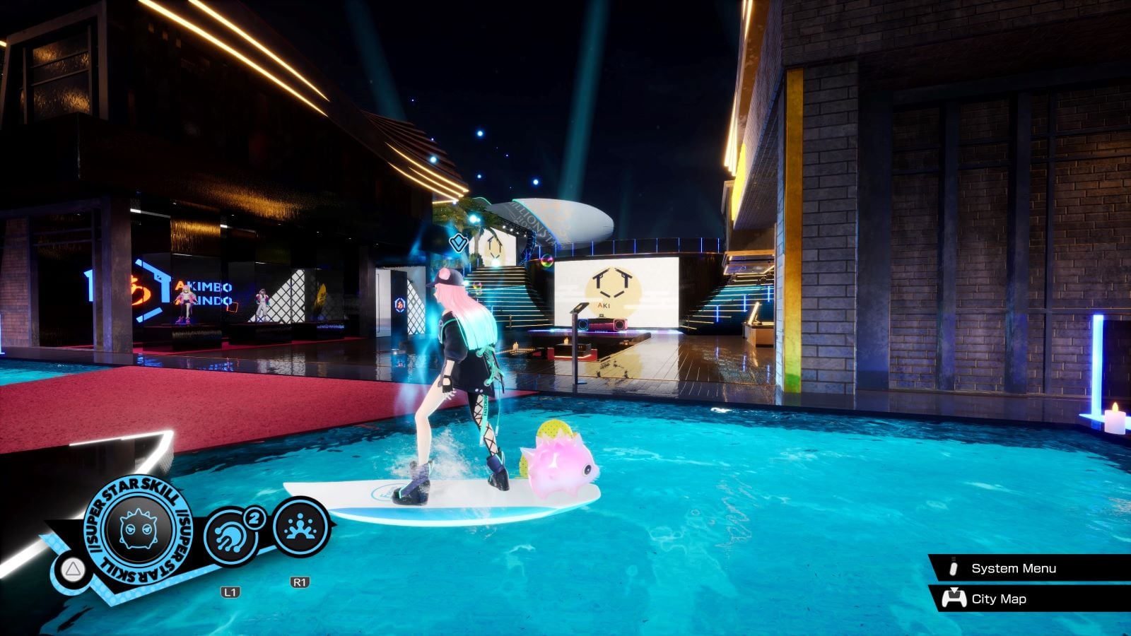 To play multiplayer Foamstars, firstly complete the tutorial when you first launch the game. Afterward, when you are on top of the hotel (in the Lounge hub zone), go upstairs. On the other side of the pool, there’s a helicopter at the back with a forcefield containing a myriad of colors. Walk up to the helicopter and press Circle at the “Versus” prompt.
