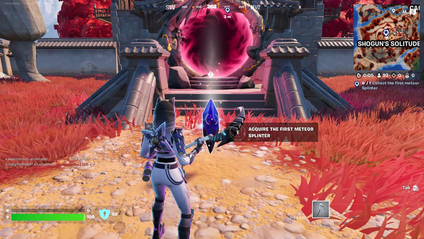 Now, here comes the fun part. You need to collect three different meteor Splinters and complete their tasks. The first meteor Splinter spawns in the Shogun’s Solitude in front of the demonic portal and you can interact with it to get it. Solve three riddles to find the next meteor Splinter.