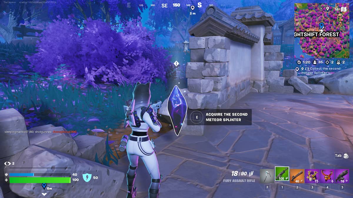The second meteor Splinter spawns near the broken wall in Nightshift Forest. Go to the middle town of the forest and go toward the east direction to find it levitating in the air.