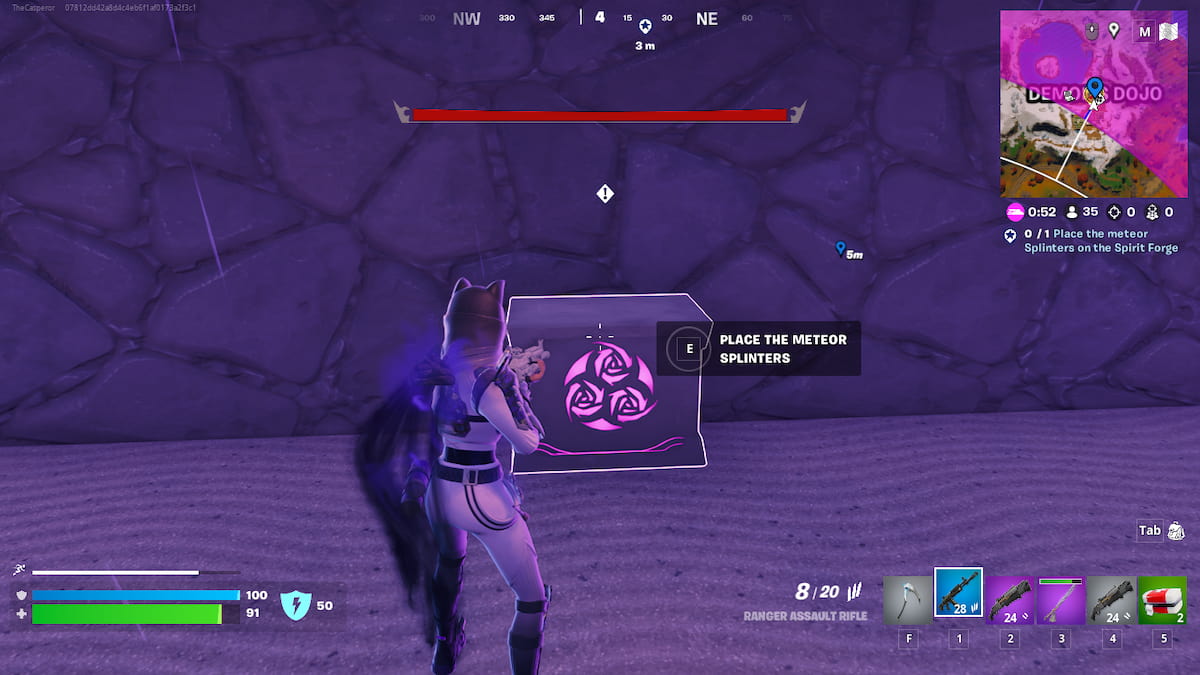 Now, make your way to the Spirit Forge, located in the Demon’s Dojo point of interest, and you’ll need to find a small glowing box under the boss’ arena. After you find it, interact with the Spirit Forge and place the meteor Splinters.