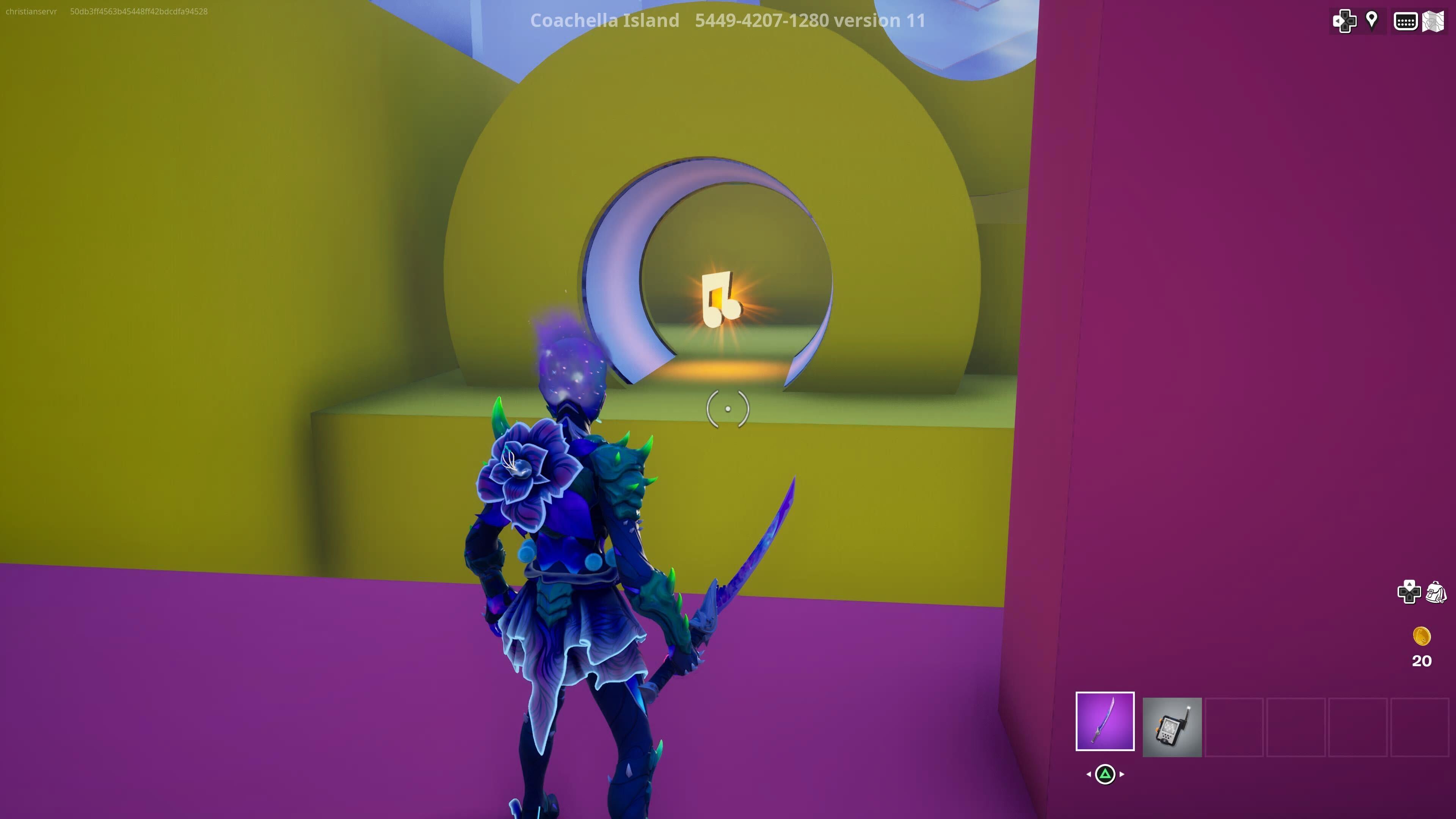 You’re required to find four “Hidden” Music Notes in the Mirage Time Warp on Coachella Island, but there are more than four across the whole experience, so if you miss one, keep going, and you will be fine. You can find the Coachella Island with the Island Code 5449-4207-1280.