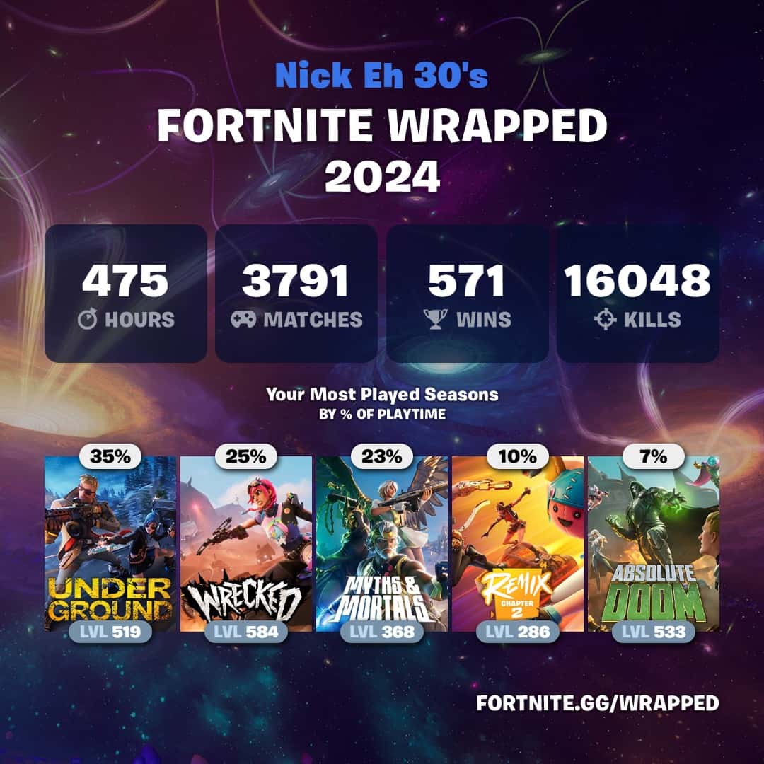 You can also look up the Wrapped of other prominent Fortnite streamers like SypherPK, Nick Eh 30, Typical Gamer, and many others to compare your stats. Keep in mind that players can hide their stats publicly, so you might not be able to see the stats for many streamers and professional players through the website.