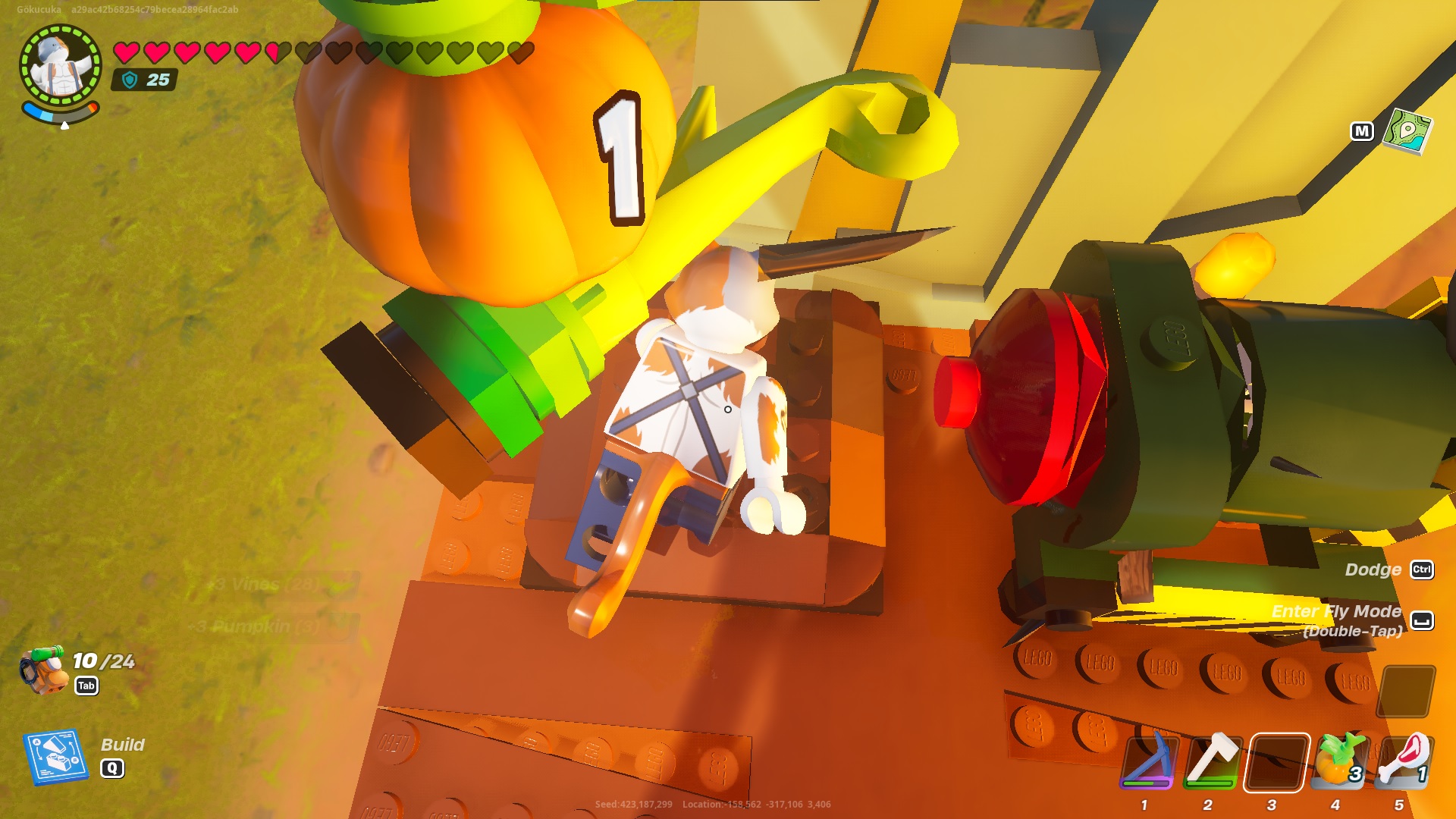 As you punch the planted seed, it’ll start dropping its respective fruit. I put 15 Pumpkin Seeds into the Garden Plot and received back 15 Pumpkins after punching it for a few seconds. While this isn’t technically a dupe, it’s one of the faster ways to get food in the game since you get to fast-forward the planting and growing Seeds processes in LEGO Fortnite. This is also a very reliable way to get Vines in LEGO Fortnite which can be used to make torches.