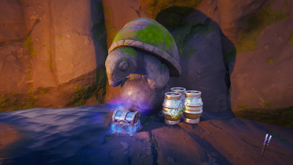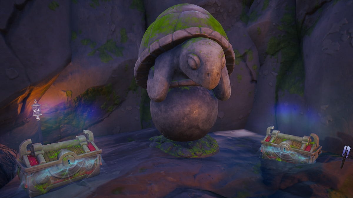 You should have three normal chests to loot in the cave’s entrance, but you will find the real loot inside the secret cave, whose door is in the middle of two turtle statues.