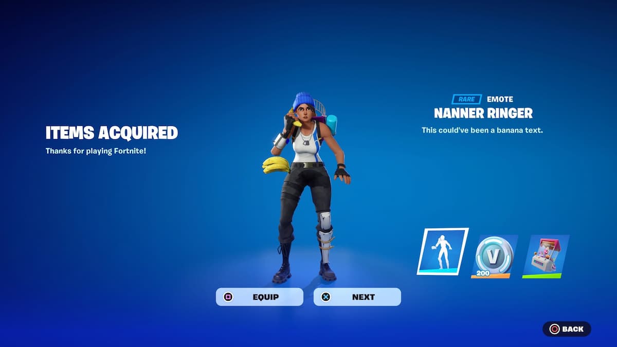 Here’s how to get the limited-time-only Nanner Ringer emote in Fortnite at the start of Chapter Five, season one.