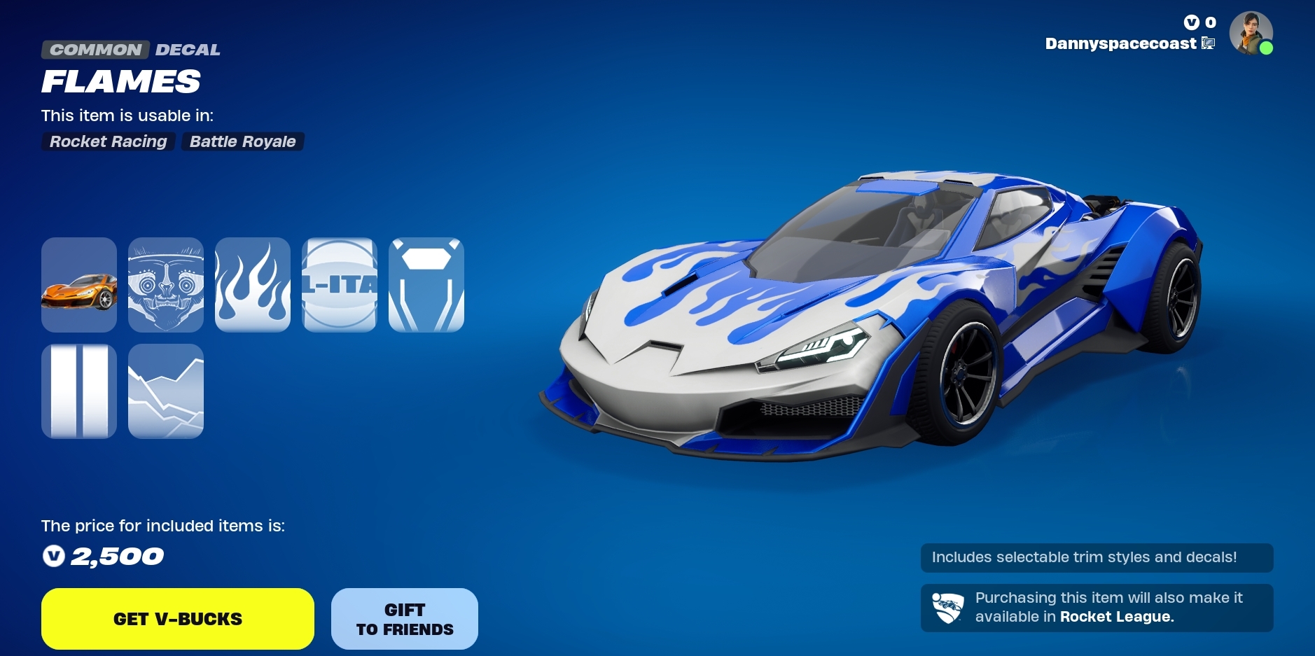 There are a total of three cars players can purchase in the shop as a bundle. The bundle package includes a car, along with a variety of decals.