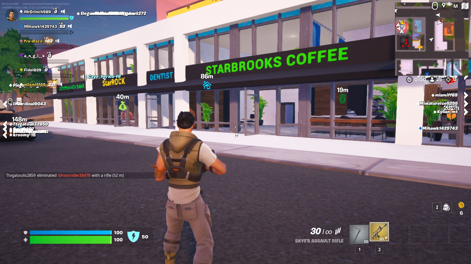 While the original Roblox Brookhaven is a role-playing game where you live in the virtual town, talk to neighbors, and do odd jobs, Fortnite Brookhaven is a free-for-all battle royale where players run around endlessly killing each other and respawning every time they die. For every kill, robbery, or task you complete in Fortnite Brookhaven, you get coins. These coins can be used to buy property around the map and vehicles for faster traversal.