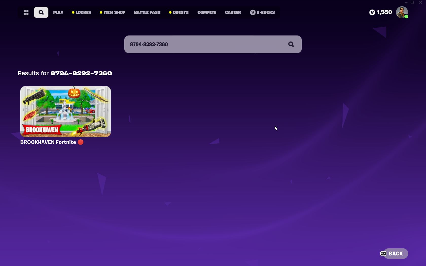 - The Brookhaven Fortnite Island should be the only search result that appears.