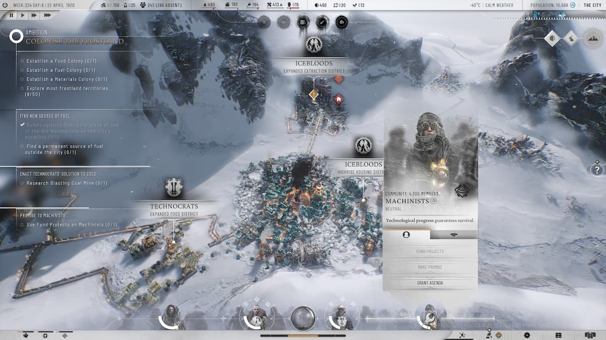 In Frostpunk 2, you increase Trust with individual communities in your city. At the start of the game, you have two communities, and as time goes on, factions (subcommunities) form and require your attention as well.