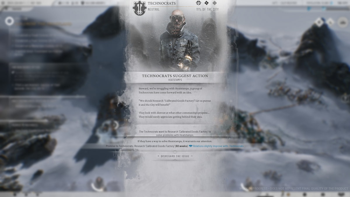 The easiest way to raise Trust with a community or a faction in Frostpunk 2 is by funding their projects. The action requires 100 to 300 Heatstamps and increases your relations with the community. Funding a project also allows the community to push their interests further, potentially creating rallies on the streets, but also worsening relationships with the opposing communities.