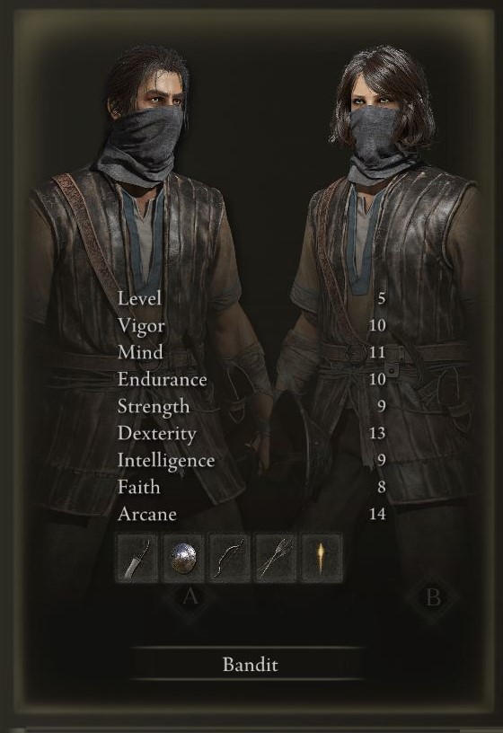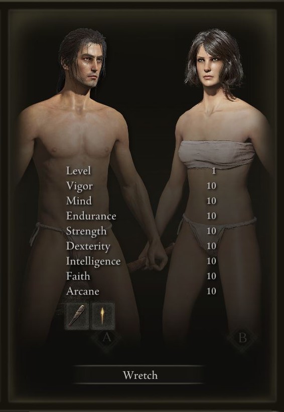 The Wretch is the class for players looking for an extra challenge and are veterans of FromSoftware games. This class starts with no armor and a Club, meaning you’ll be vulnerable to almost everything. But the Wretch’s stats all start at 10, meaning you can build them as you see fit to create a truly custom character. We don’t recommend this class for beginners or your first playthrough.