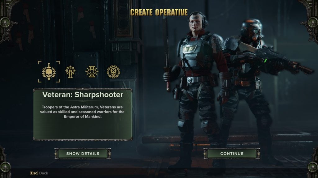 | Starting Gear | Standard-issue Munitorum Sapper Shovel and Kantrael Mk VII Lasgun |