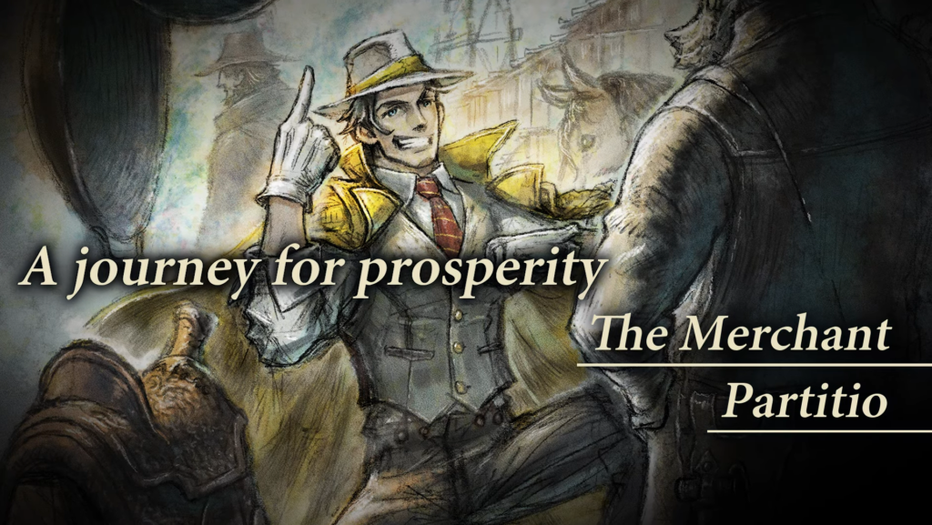 Partitio is a merchant and looks like a real wheeler and dealer based on his character design. It seems like he’s taking his journey for prosperity seriously, too. He says in the trailer that he’ll only return from his journey when he eliminates “that devil called Poverty from the world.”