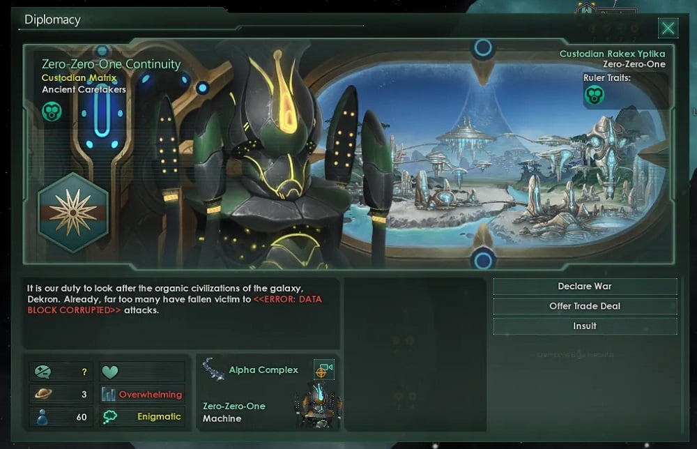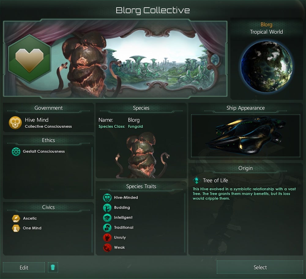 The other trait for the Hivemind basically enables better negotiation and is similar to the Emotional Emulators trait as well. The only difference here is that Charismatic is available to empires that are biological instead of machines. This is another trait that works well with other biological races too, but in the hands of the Hivemind, it truly thrives.