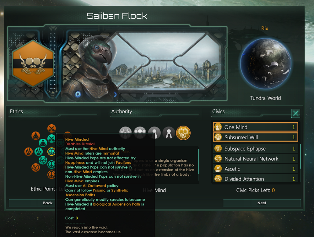 This increase in efficiency then also enables your empire to tech up the ranks faster than the others. With how important it is to tech up regularly and quickly, the Intelligence trait is not only great for Hiveminds but also any race looking to speedrun through their technology tree. As such, this is a powerful trait that any race can use, even though it is stronger on the Hivemind.
